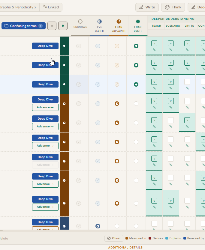 When relationships are visible, gaps, weak foundations, and misplaced assumptions become obvious. A list of topics becomes a usable and personal mental model.