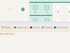 Shift-click to group related topics with a shared colour border. Clusters and sub-systems emerge visually. Grouping topics mentallty before exploring them lowers the burden of learning and improve retention.
